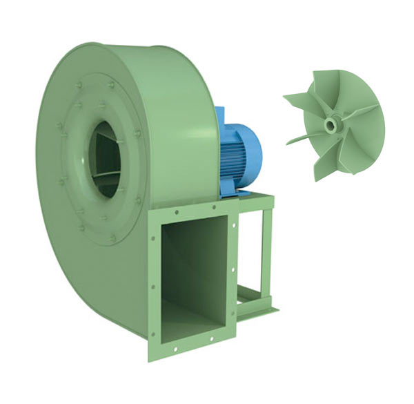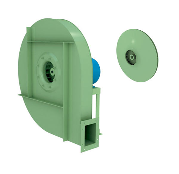 Ventilatore centrifugo a media e alta pressione. Girante a pale rovescie ad alto rendimento. Accoppiamento diretto o a mezzo giunto elastico. Massima robustezza e rumorosità contenuta.