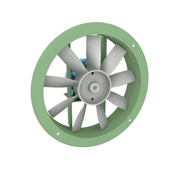 Ventilatore elicoidale con girante pressofusa in lega leggera con pale a profilo alare.